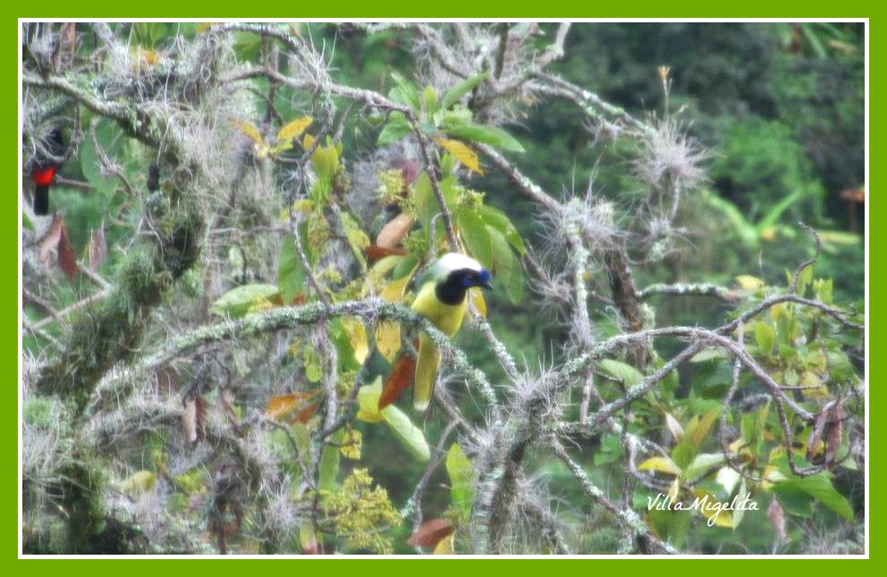 I had many people try to talk me into taking this tree down when I repaired my lake. I understood: this is an old avocado tree, never to produce again, and barely alive. It still has roots that interfere with the wall that surrounds the lake, but I had to say “NO way!” It is the tree of life at Villa Migelita. It is the resting place for all the birds that pass by. This tree is my sanctuary and my place of peace as well as theirs. How could I ever take it down? There are many trees so close by, beautiful pines, banana trees, heliconia, a beautiful lake with flowering plants right there; but they go to this half dead tree, the birds of Villa Migelita. There are so many species of birds who share my tree, hummingbirds,