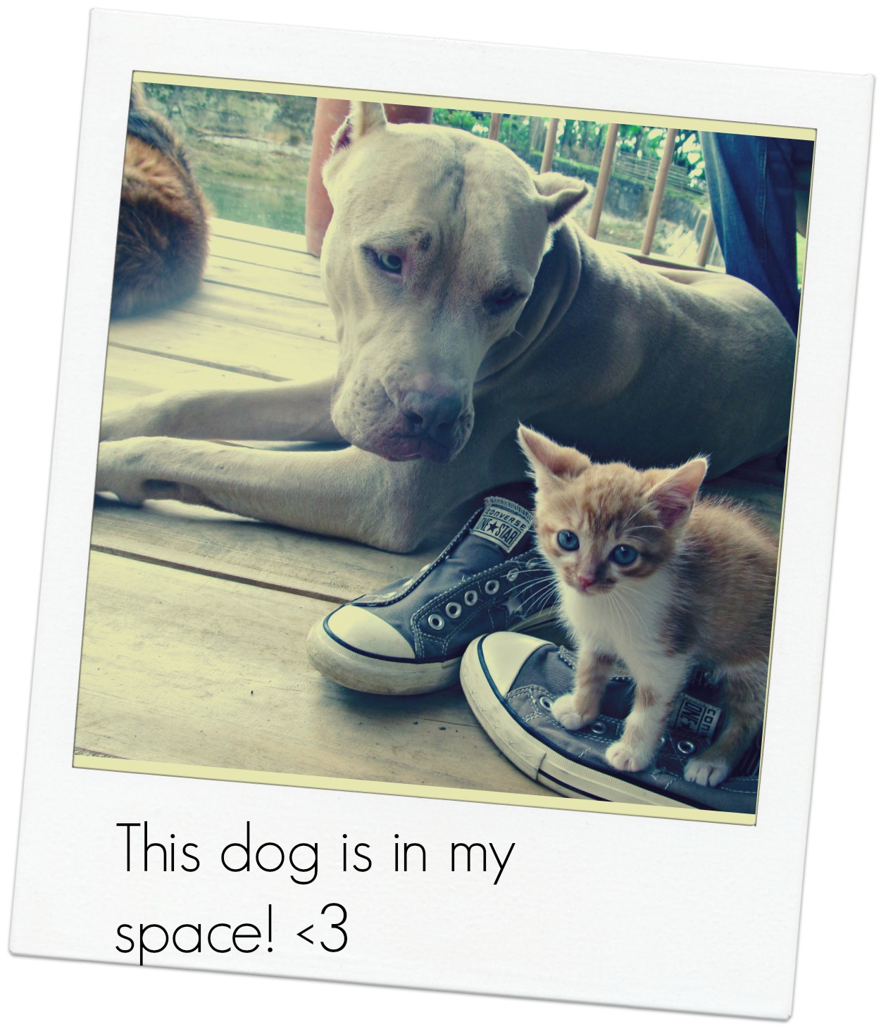 The kitten is a rescue too, named Tommi. He is grown now and is best friends with my new addition Beeja. Beeja was going to be thrown to the streets, so I adopted her.