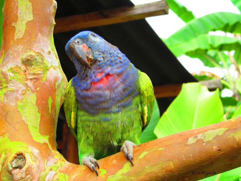 I looked out from my glass enclosed bedroom, and saw my worker was taking an ax to my tree. I yelled out, but it was too late; the tree fell along with all the fruit, scattering guava everywhere. The look on his face was horror as he realized that he was cutting the wrong tree. I had asked him to cut up a banana tree that had fallen during a rainstorm, and pointed to the tree on the ground. It is unfortunate that the Guava tree was right in the path of the banana tree. How he thought my live Guava tree should be cut down from me asking him to cut up a dead banana tree I will never know. I do know that I sometimes can’t understand someone speaking Spanish to me, and it is because they speak with a slightly different accent. I am sure he had no idea what I was saying. I wish he would have asked my maid to make sure he was doing the right thing, but he didn’t and I lost a beautiful tree. I was lethargic the rest of the day, unable to concentrate due to the sick feeling in my stomach about this unnecessary loss. I would often photograph birds on this tree, eating the fruit on the ground as they fell with ripeness. Then something happened that changed the loss into a gain, the dead tree was placed in a spot next to Luci to be useful once again.