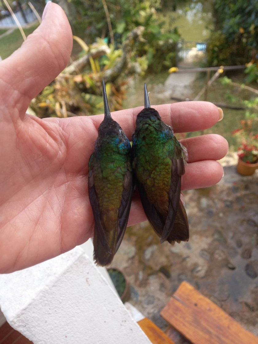 Hummingbirds are my favorite interaction during my days here at Villa Migelita Ecolodge. These lovely little beasts who regularly fight each other to claim a feeder at my glamping place. I can never tire of their antics. They are solitary birds living alone; they mate, and the female does everything after that alone. She takes care of the babies for about three weeks and sends them on their way. Hopefully, they survive. As a person with a lot of interaction with hummingbirds, they definitely have obstacles when they are released by mom. They have to learn to survive alone because they are on their own after their mother cares for them!